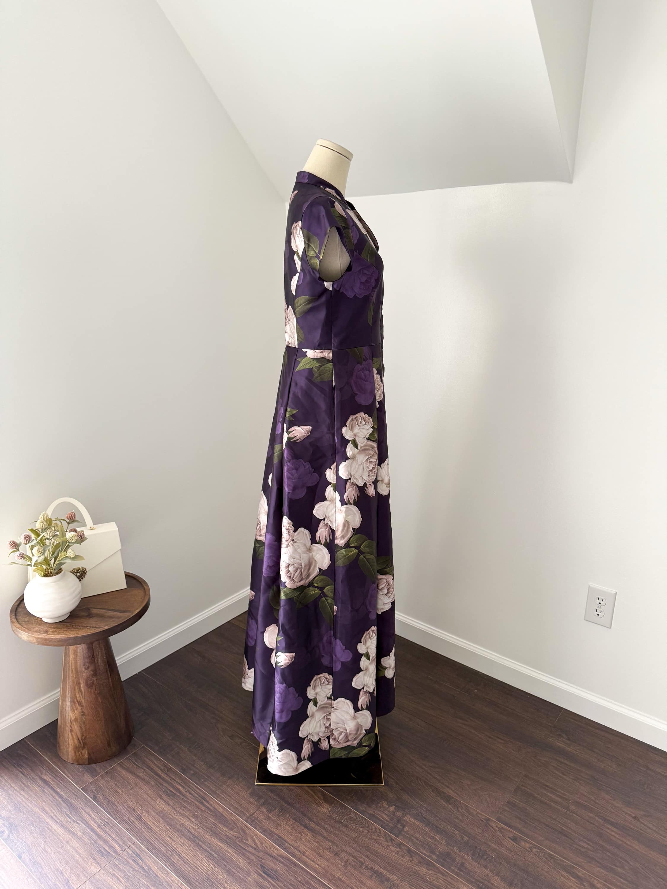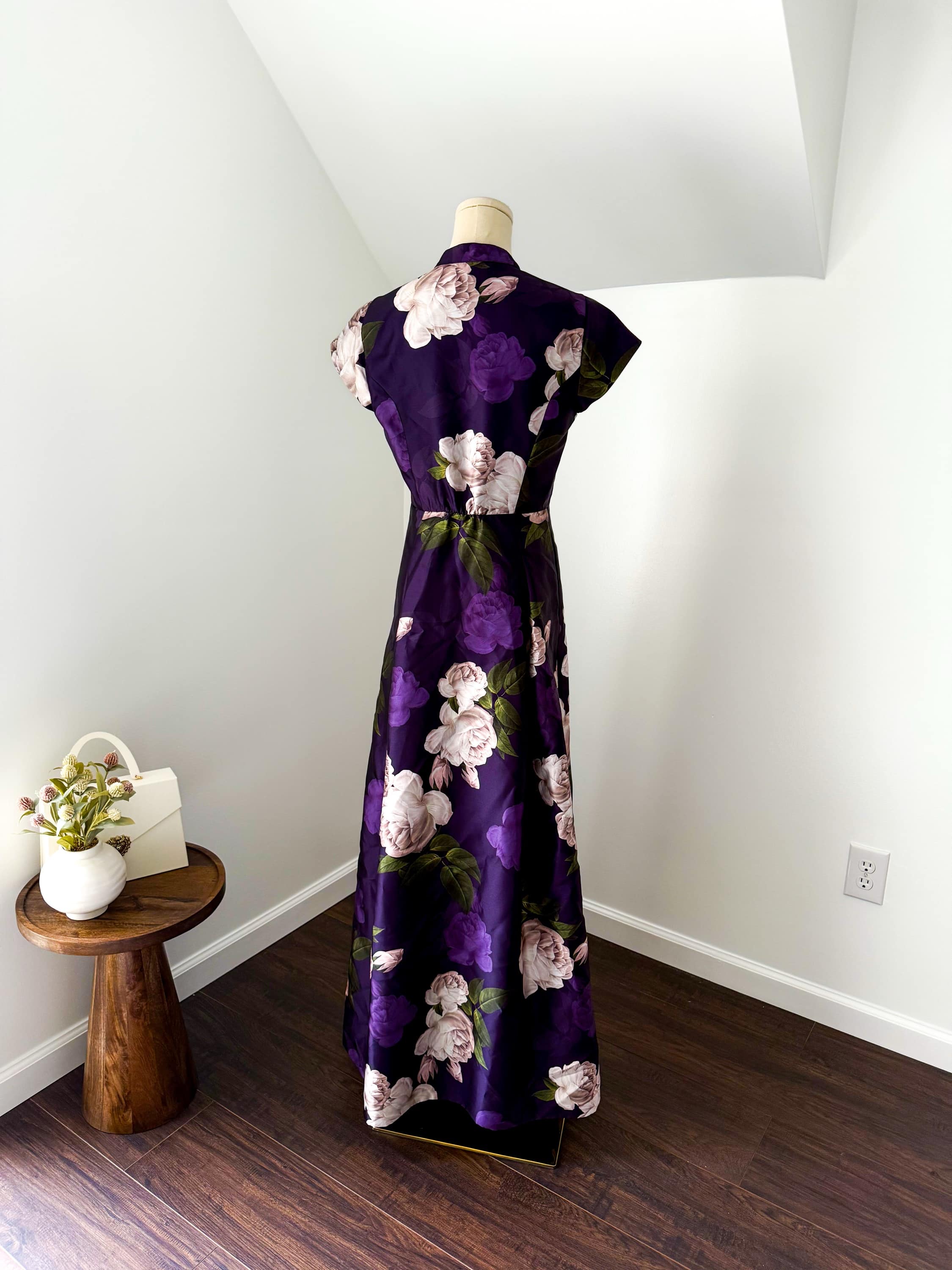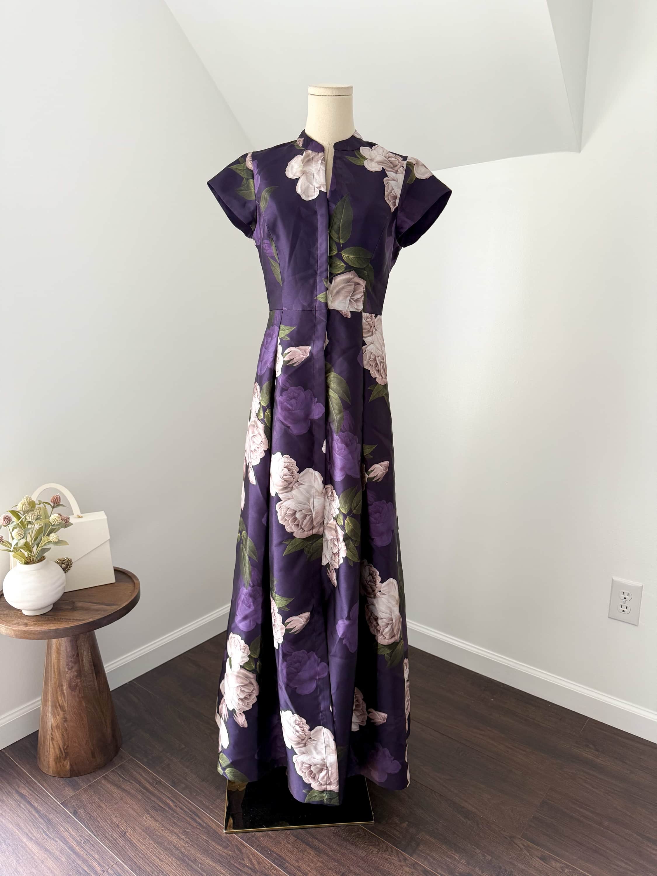 Sachin + Babi MARTA GOWN – TWILIGHT BLOOMS Floral Print Mikado Short Sleeve Gown