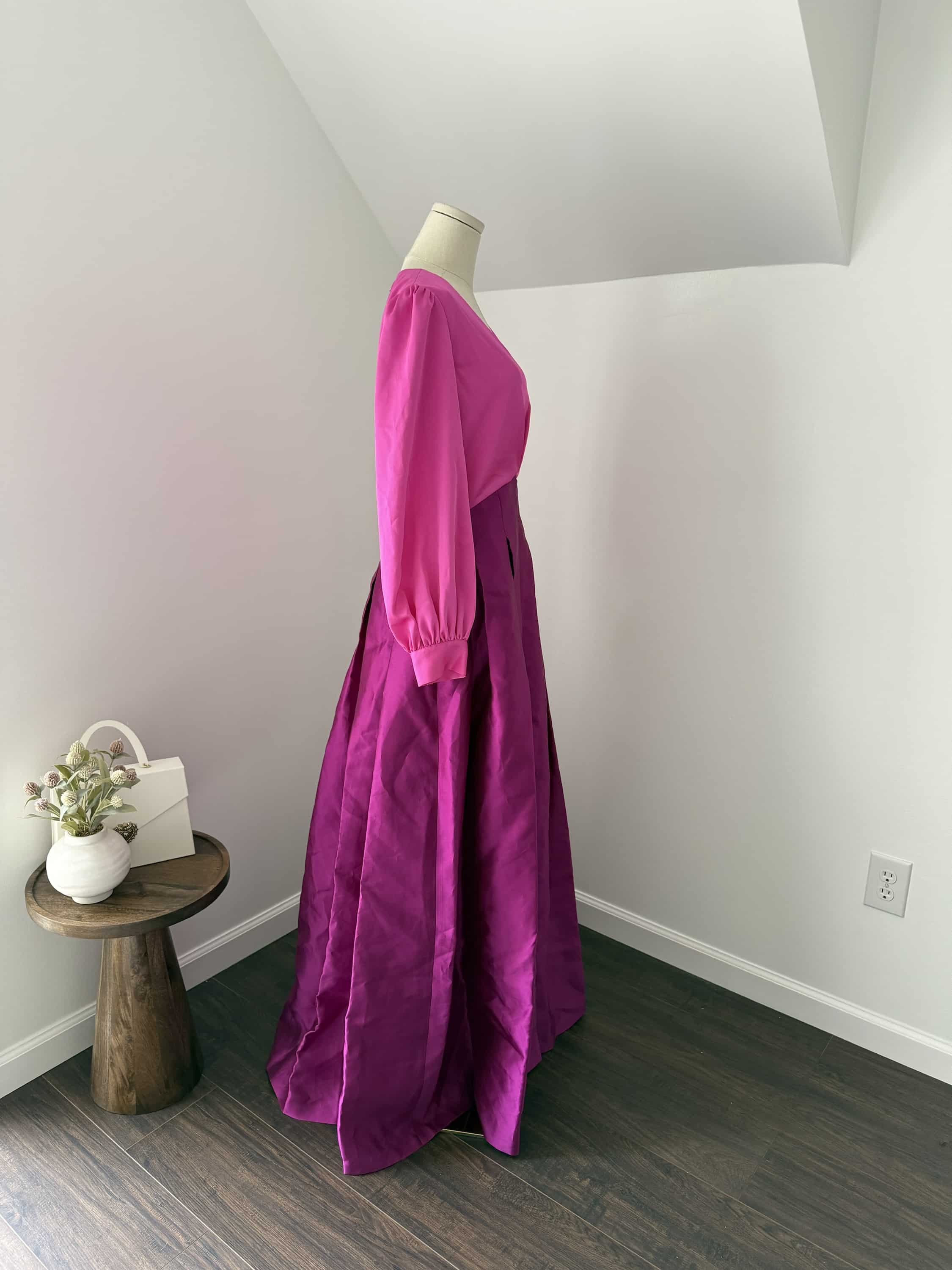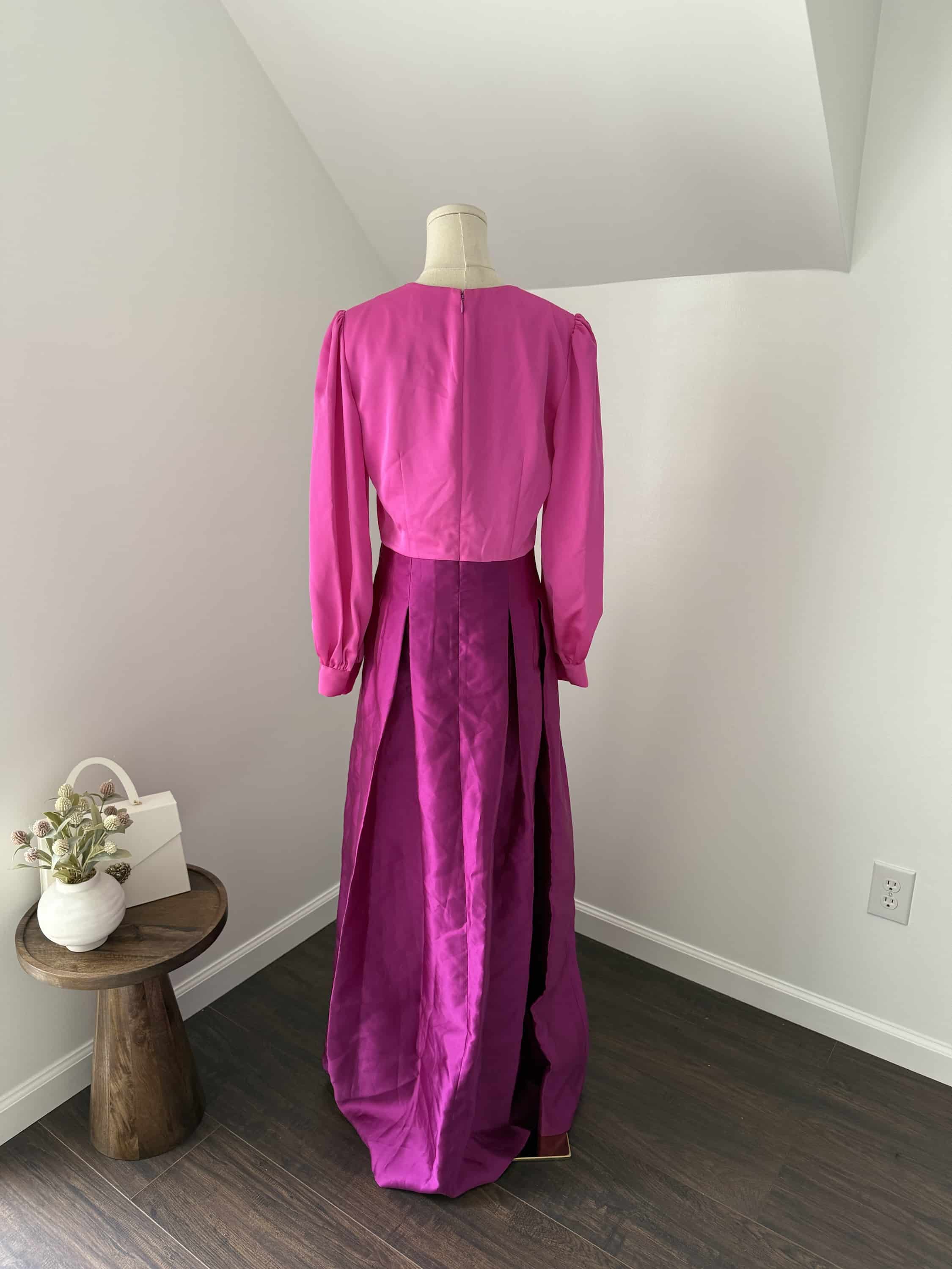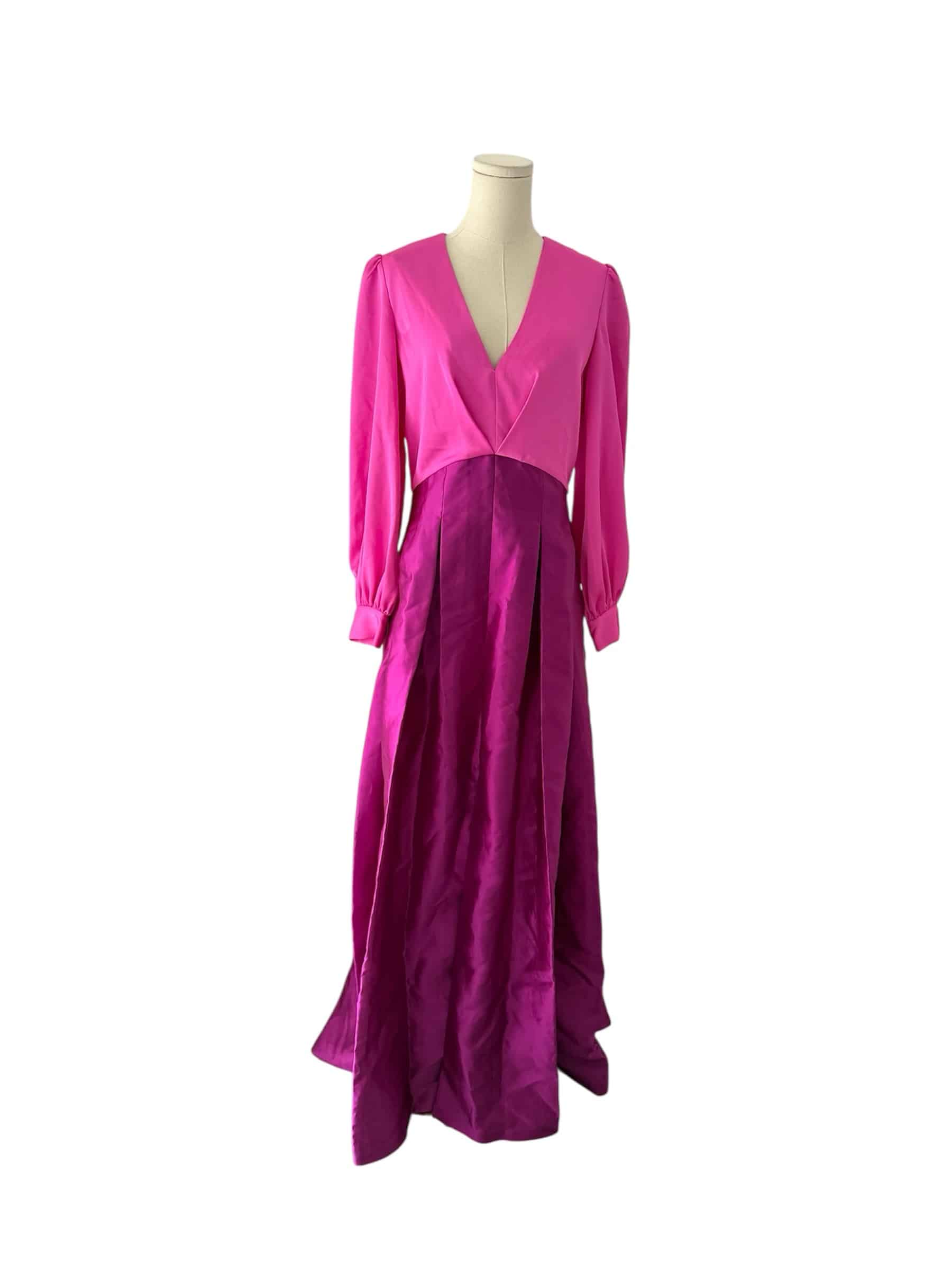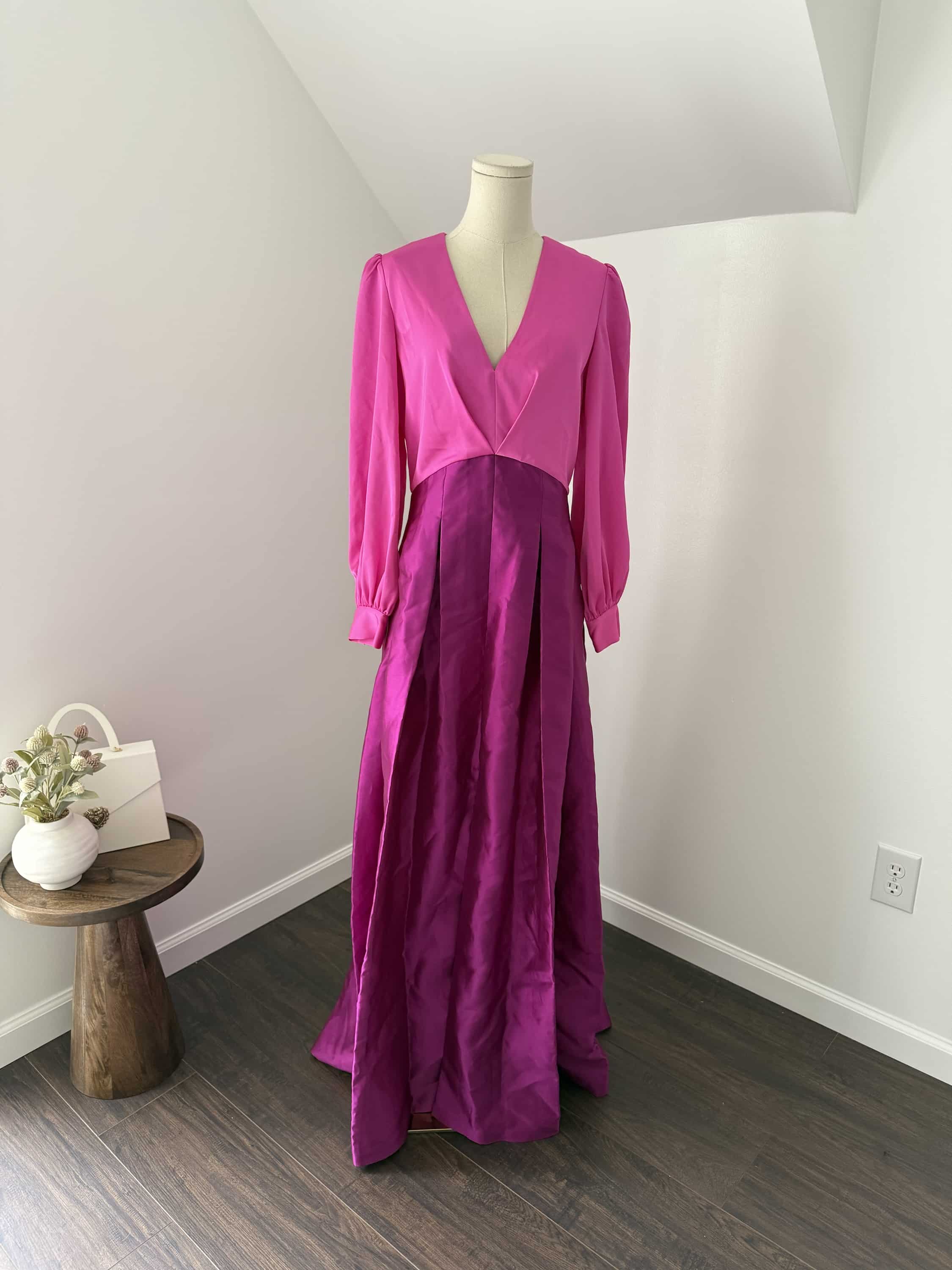Sachin + Babi ZOE GOWN – PINK/MAGENTA V Neck Box Pleat Ball Gown