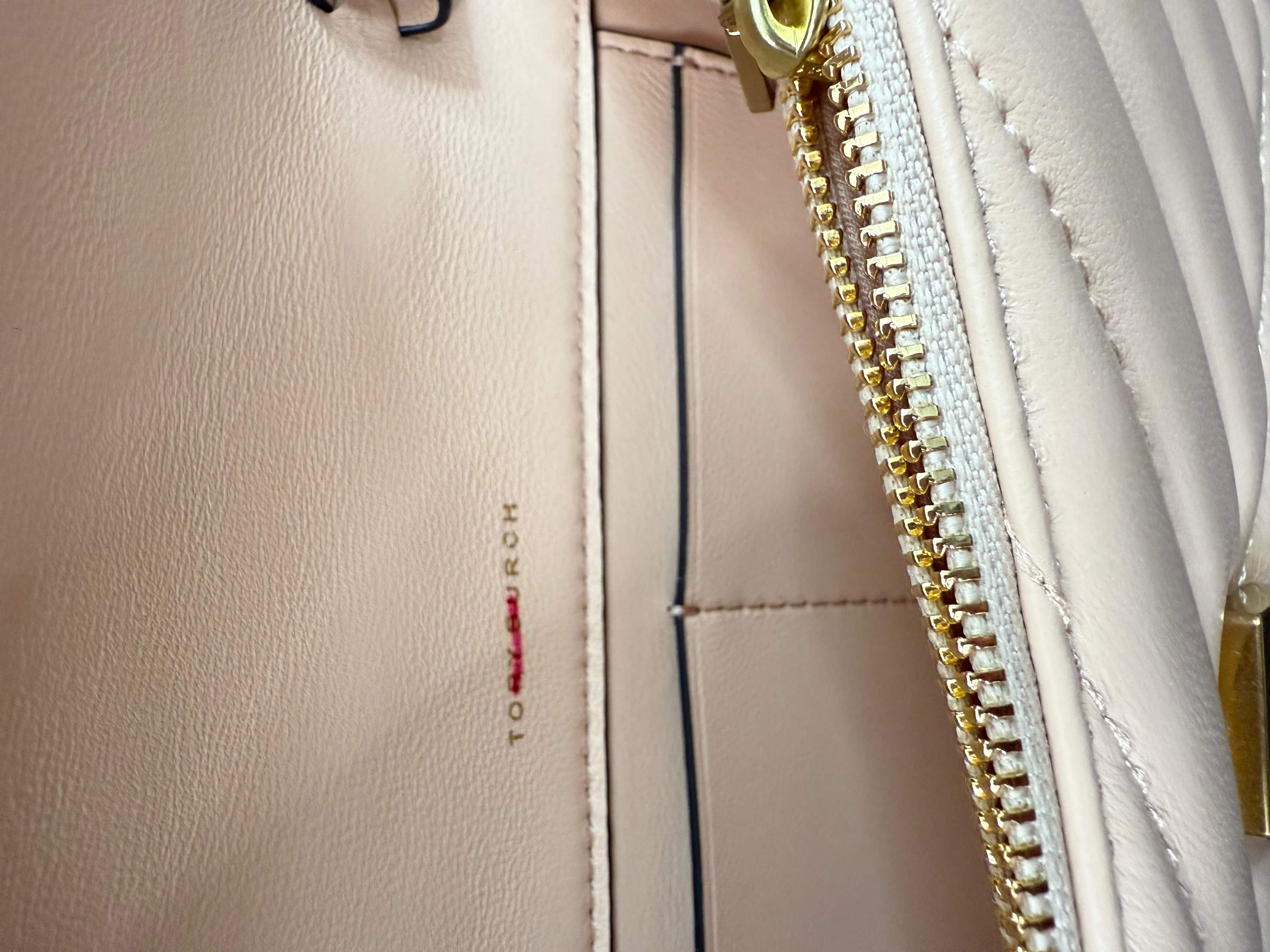 Tory Burch Kira Diamond Leather Top Handle Wallet in APRICOT